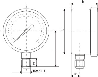 儀表由測量系統(包括接頭、膜盒等)、傳動機構、指示裝置和外殼組成。導壓系統及外殼均用不銹鋼材料制成,采用密封型結構,防止污穢物侵入。